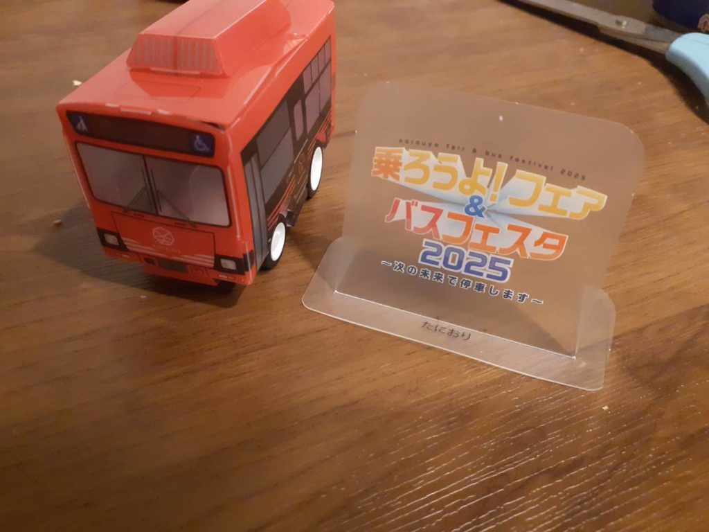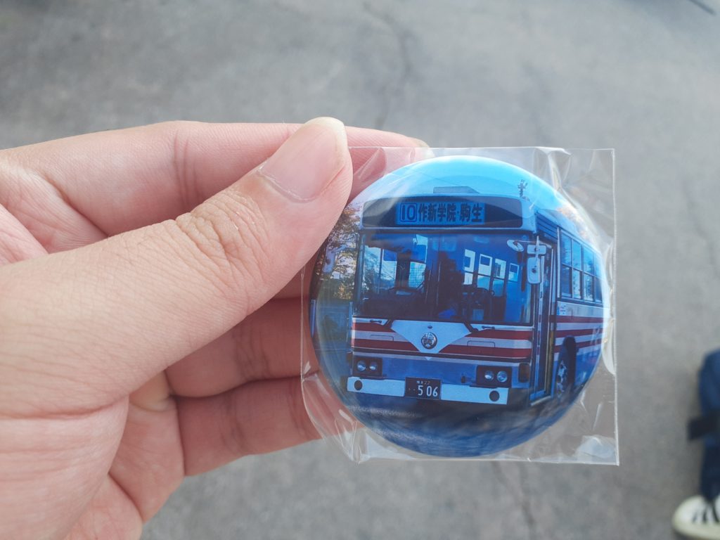 また、グッズ販売も行っており、缶バッジガチャをしたら、宇都宮住んでいたときのお気に入りの506号車(2番目に古参、駒生所属、U-規制の日野ブルーリボン)が当たりました。