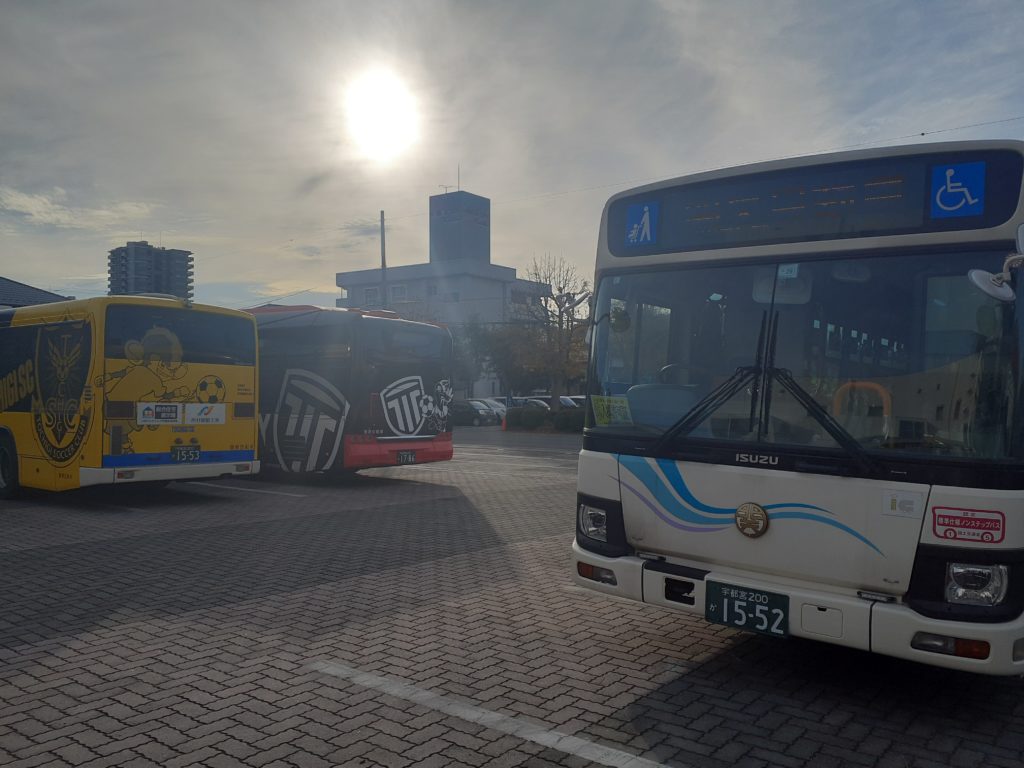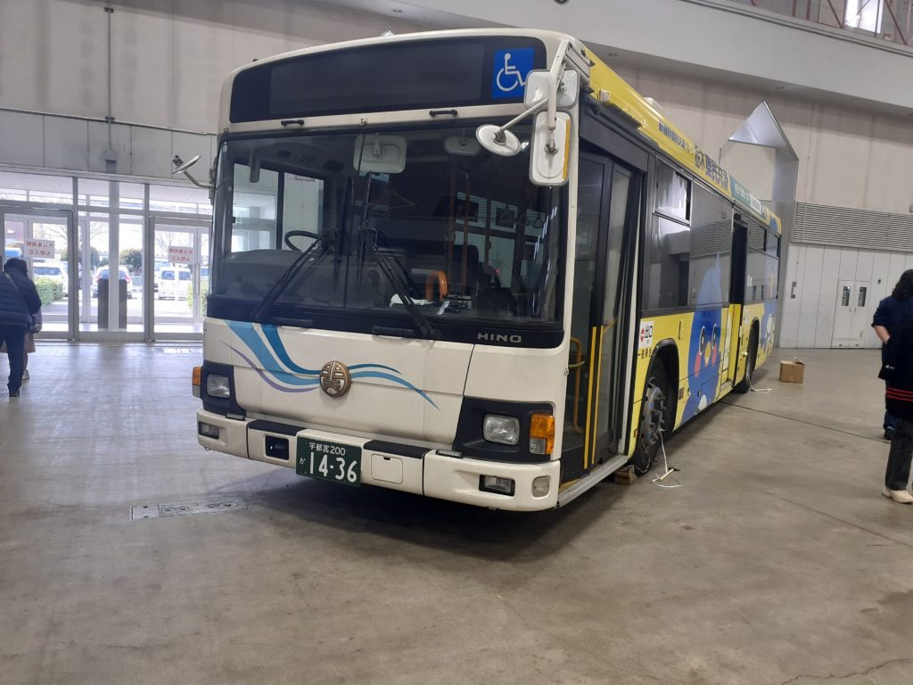 会場では、最近導入された宇都宮製の電気バスが待ち構えていました。